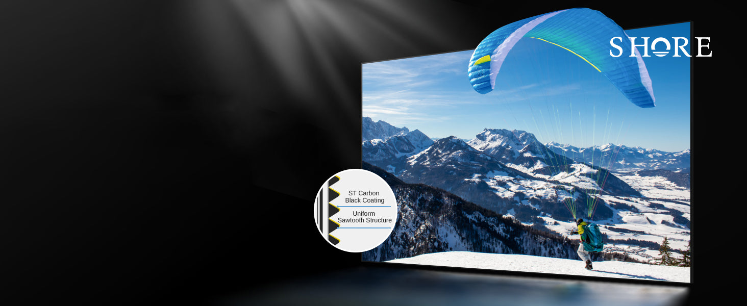 At the core of the Black Series screen is ST Carbon Black, a high-temperature-treated optical layer designed to absorb stray light and minimize reflection. The result? Blacker blacks, richer contrast, and incredible depth, especially in dark scenes. Whether you're watching sci-fi epics or suspense thrillers, the darker the room, the more powerful the picture — creating a truly immersive, theater-like atmosphere that pulls you deep into the story.