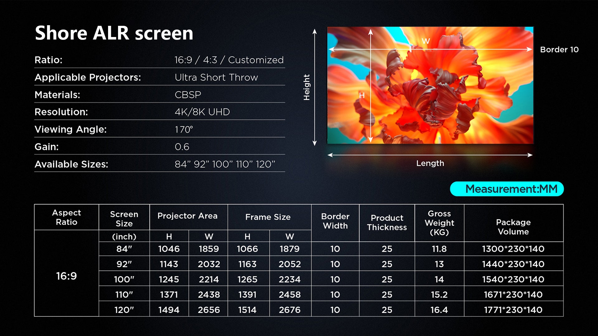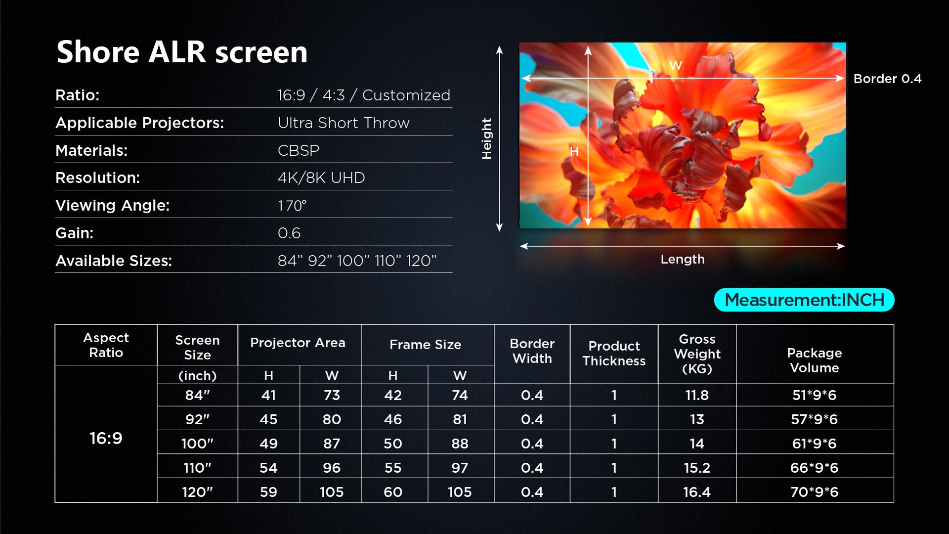100''-120'' Shore Black Series ALR/CLR Ultra Short Throw Projector Screen